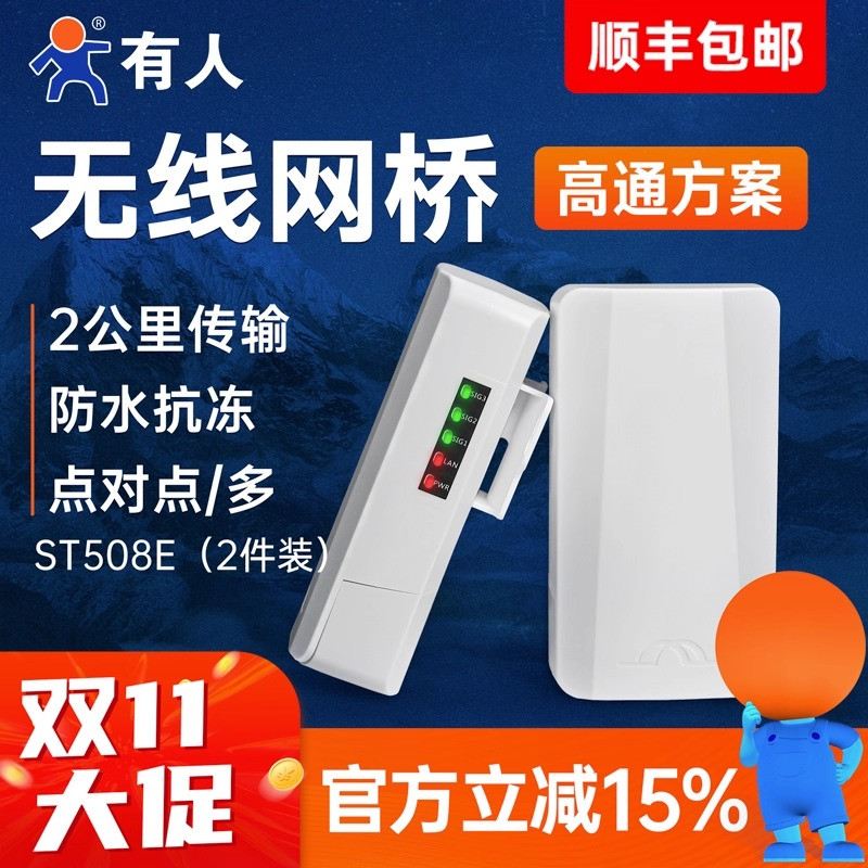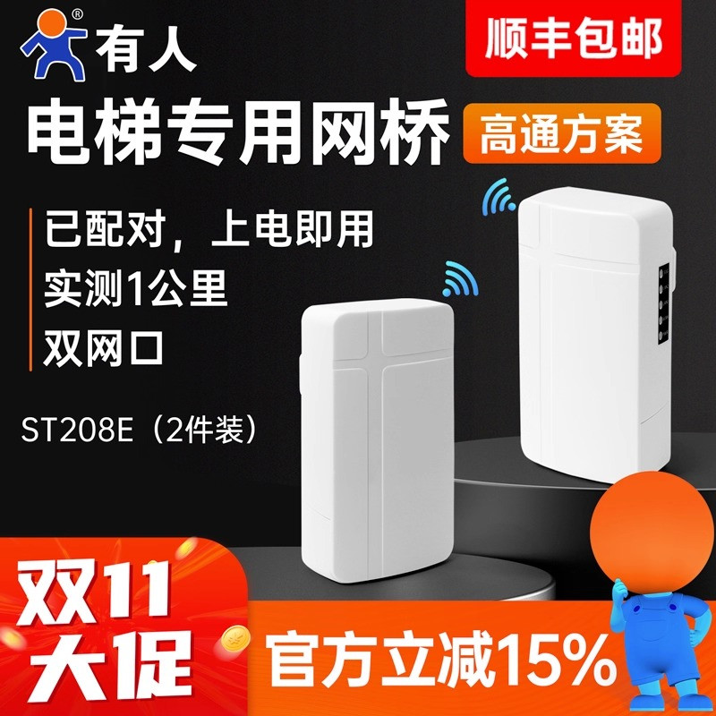 有人无线网桥1公里电梯监控专用一对多传输免配对户外防水点对点WiFi桥接中继器CPE海康大华高通芯ST208E