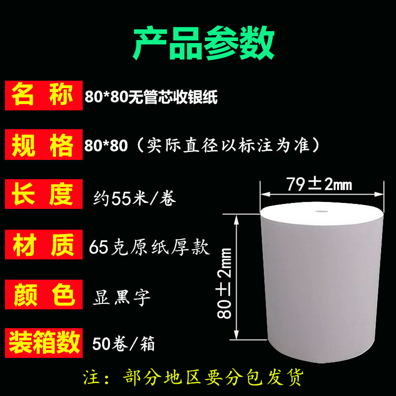 无管芯收银纸80X80热敏纸8w0mm超市收款纸叫号机厨房点菜宝打印纸