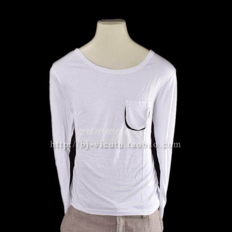 包邮清仓 白色天丝粘纤圆领修身弹力针织柔软长袖T恤男士舒适体恤