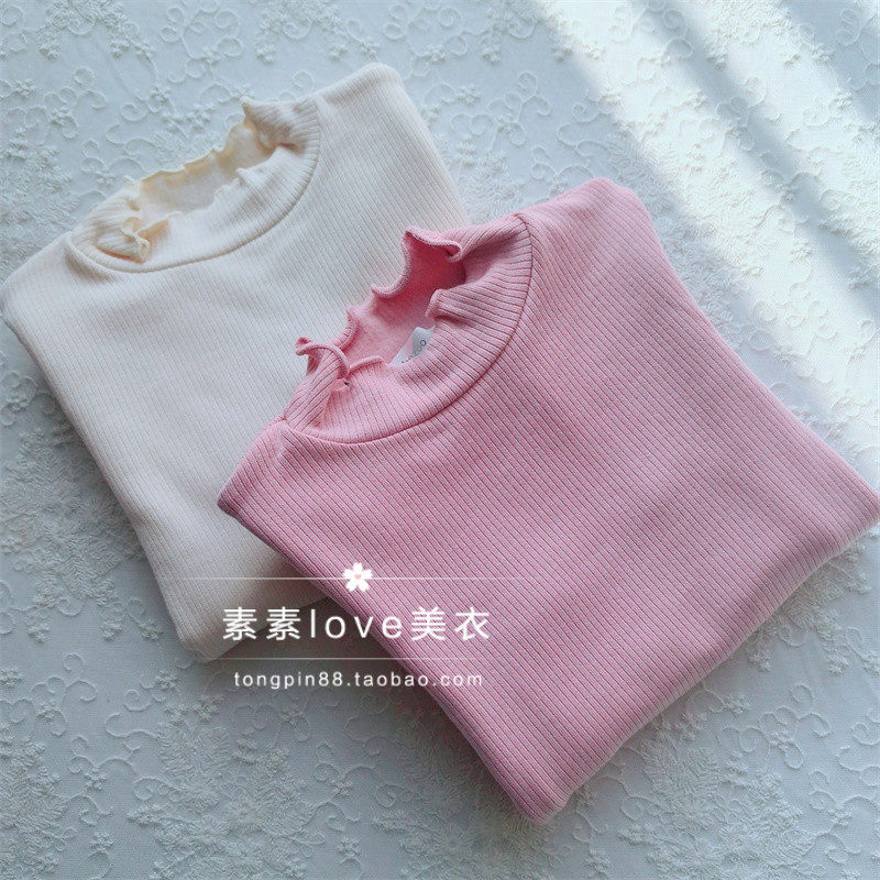 保暖弹性好~三件包邮 韩女中小童110-160坑条花边薄绒长袖打底T恤