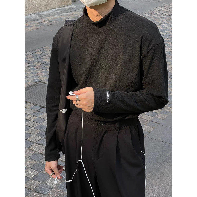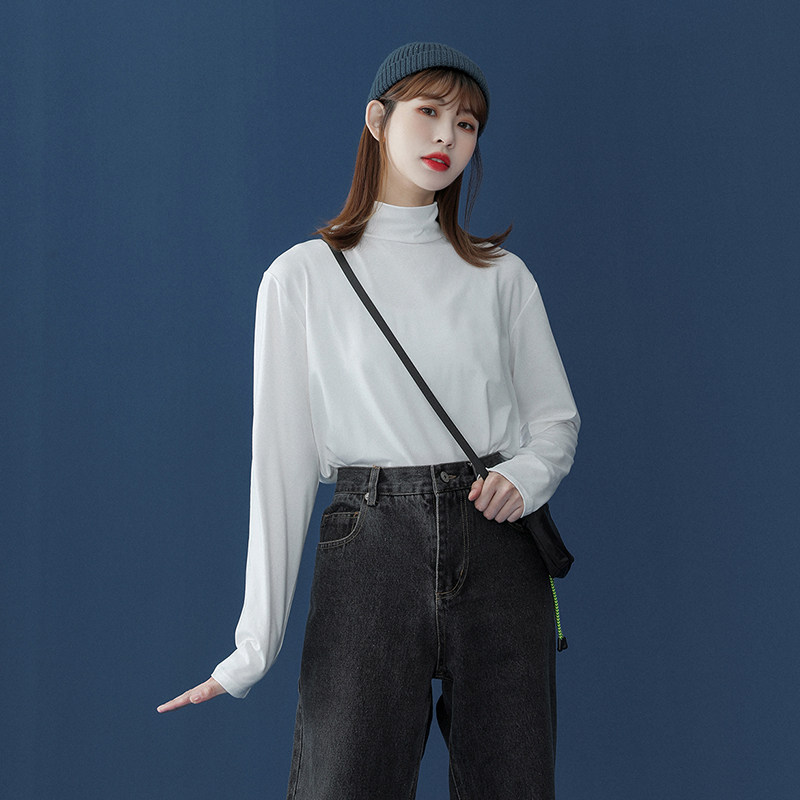 【满两件包邮】2025秋季新款青少年港风半高领德绒打底衫长袖T恤