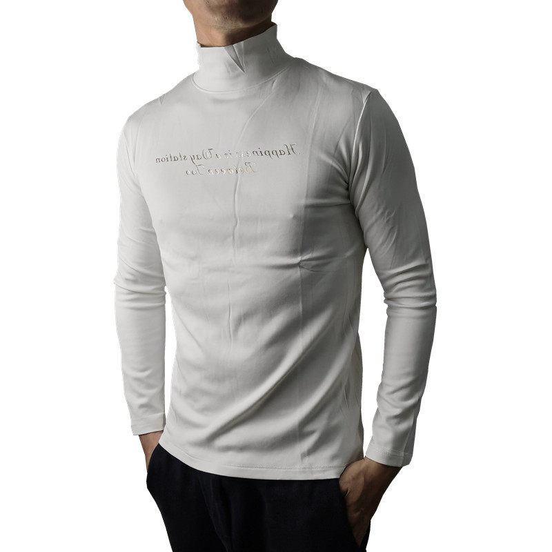 包邮 秋季新款男装紧身打底衫 大圆领弹力修身T恤莱卡棉 低领长袖