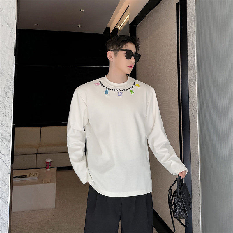 【精品】满68包邮◆2025春秋男港风圆领立体彩色绣花百搭长袖T恤