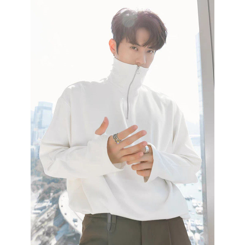 【满两件包邮】2025新款重磅拉链长袖手套T恤高领打底衫小众卫衣