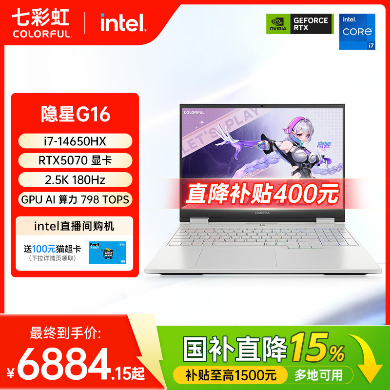 【国补15%+限时直降400】七彩虹隐星G16 14代酷睿i7-14650HX RTX5070独显16英寸游戏笔记本电脑电竞本