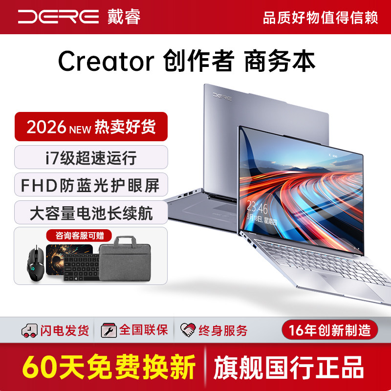 DERE/戴睿 笔记本电脑轻薄本酷睿16英寸手提电脑旗舰店官方正品2.5k超清屏i7级商务办公本大学生14英寸游戏本
