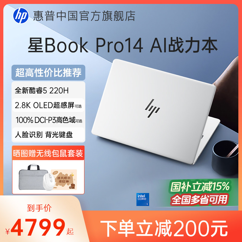 【国家补贴15%】HP/惠普星bookpro14 可选英特尔酷睿5 120Hz高刷轻薄本惠普笔记本电脑轻薄本办公本惠普
