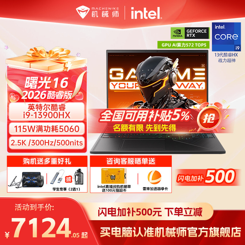 【国家补贴15%】机械师曙光16 英特尔酷睿i7/i9HX RTX5060 16英寸S电竞游戏本笔记本电脑以旧换新补贴