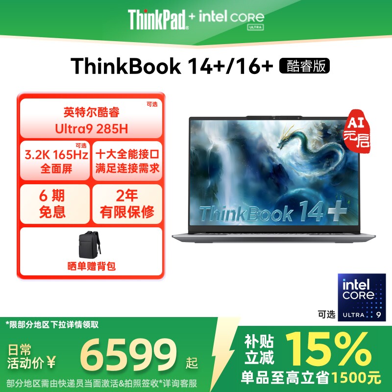 【政府补贴】ThinkPad联想ThinkBook14+英特尔Evo酷睿Ultra 32G1T办公游戏轻薄学生商务笔记本电脑官方