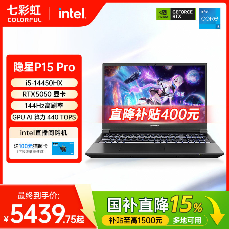【国补15%+限时直降400】七彩虹隐星P15pro 酷睿i5-14450HX RTX5050独显15.6英寸电竞游戏笔记本电脑官旗