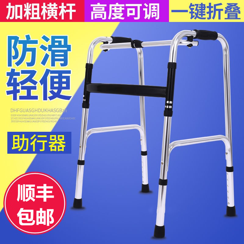无轮双按钮铝合金助行器老年人可折叠助步器可高低调节康复助行器