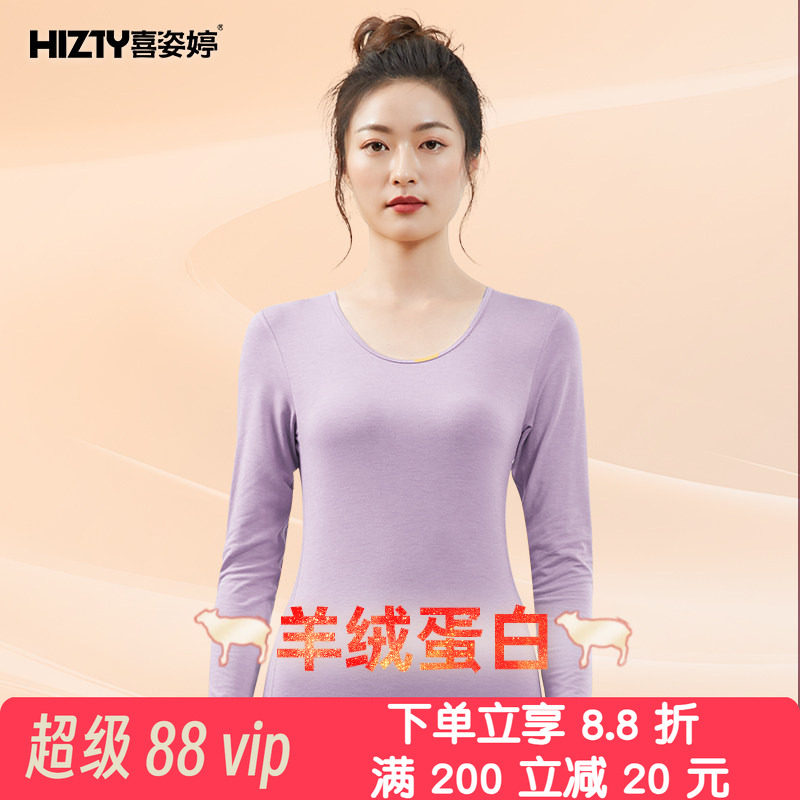 Hizty/喜姿婷保暖内衣女羊绒蛋白打底衫秋衣秋裤套装青年春秋轻薄