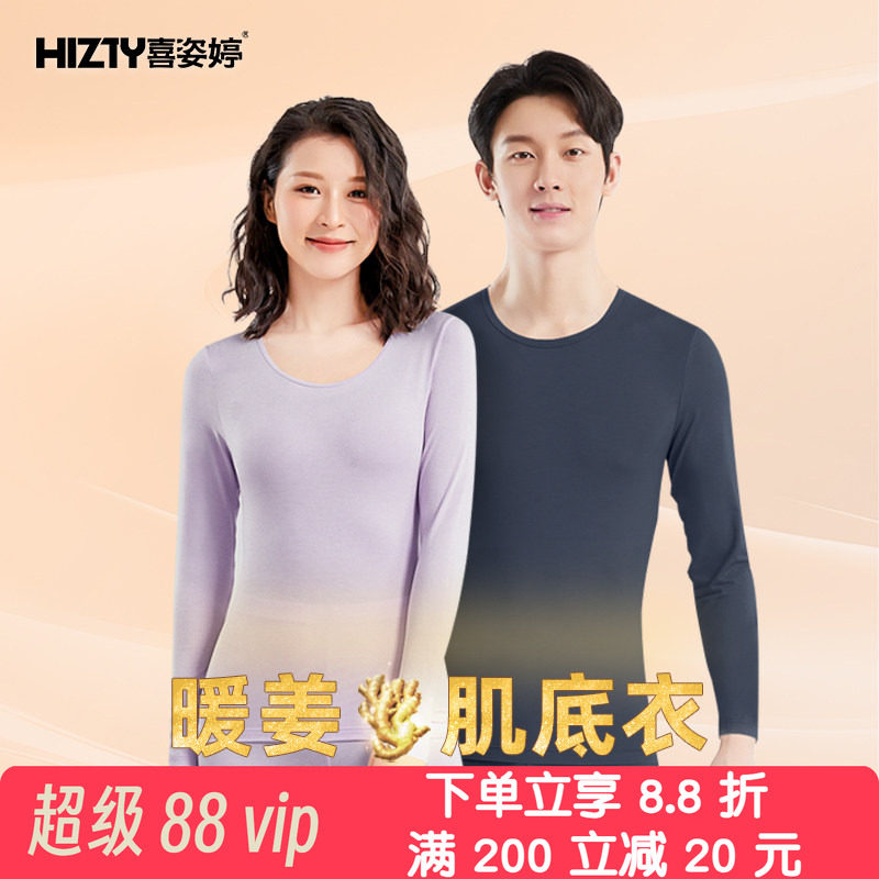 Hizty/喜姿婷保暖内衣女暖姜肌底衣打底衫秋衣秋裤套装男青年超薄