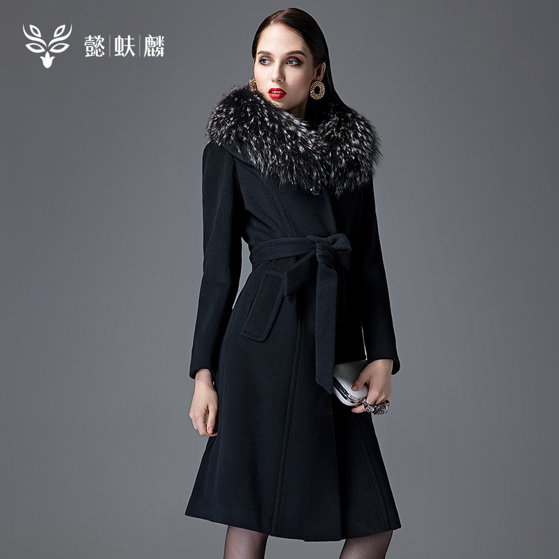 懿蚨麟羊毛大衣毛呢外套女秋冬时尚气质腰带长款修身显瘦貉子毛领
