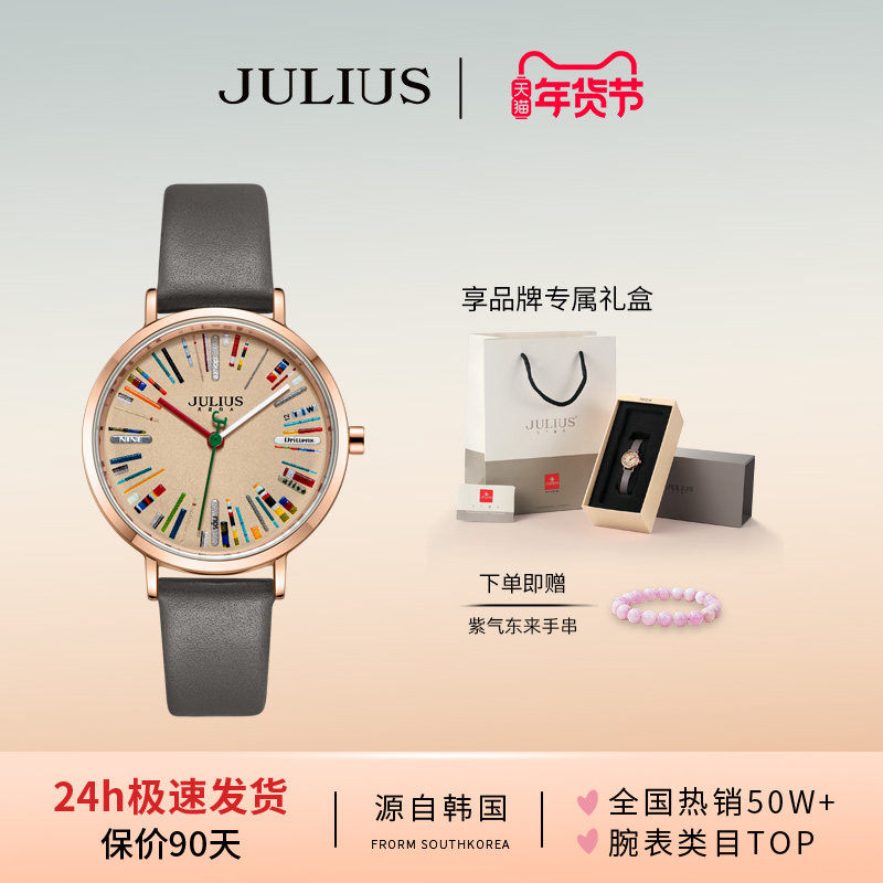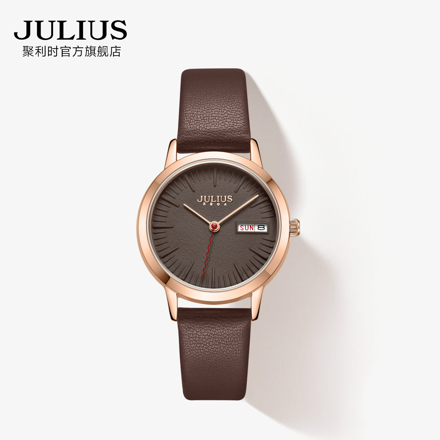 聚利时韩版通勤女生皮带手表防水简约日历星期显示学生女表1375