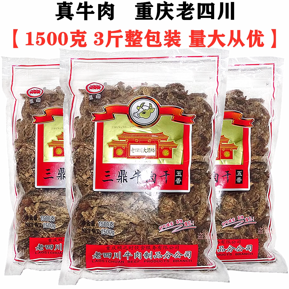 3斤装整袋重庆特产三鼎老四川五香牛肉干1500g袋装牛肉干零食小吃
