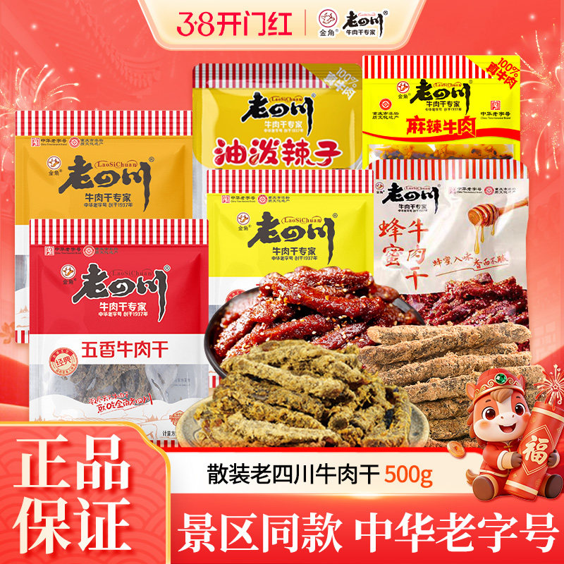 金角老四川牛肉干500g五香牛肉干小袋装麻辣牛肉重庆特产休闲零食