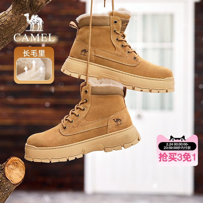 骆驼男鞋子冬季棉鞋加绒加厚保暖工装休闲防寒户外高帮雪地靴男款