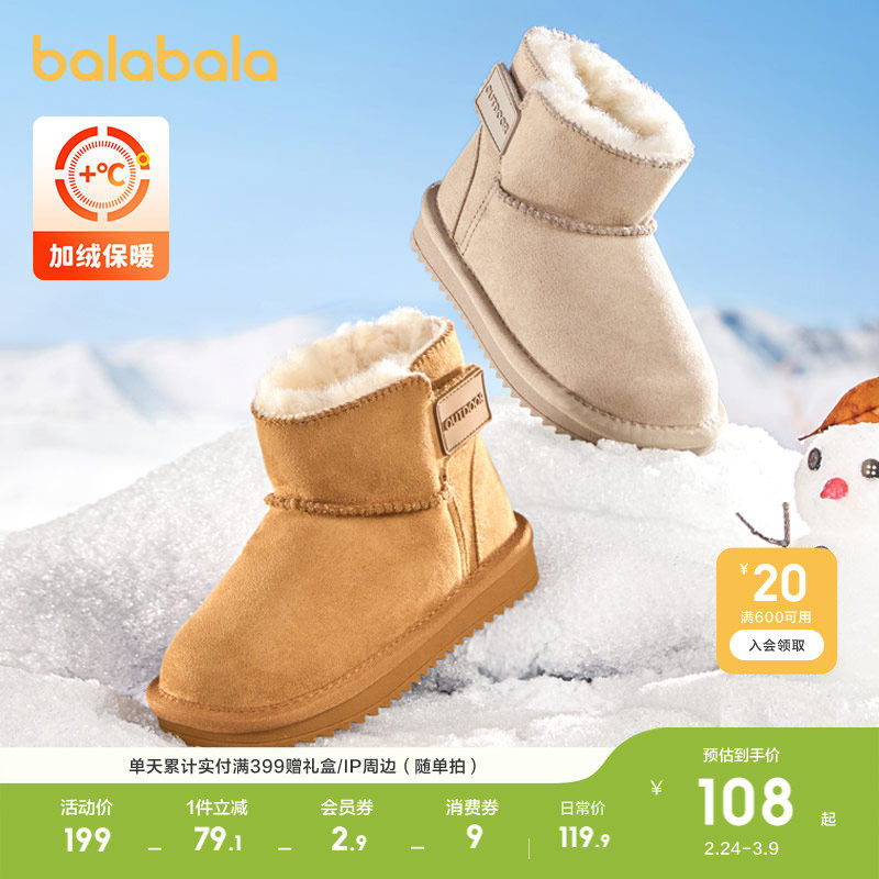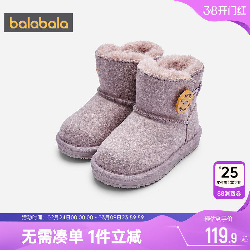 巴拉巴拉儿童雪地靴男童女童加绒鞋子冬季新款童鞋宝宝加厚棉靴潮