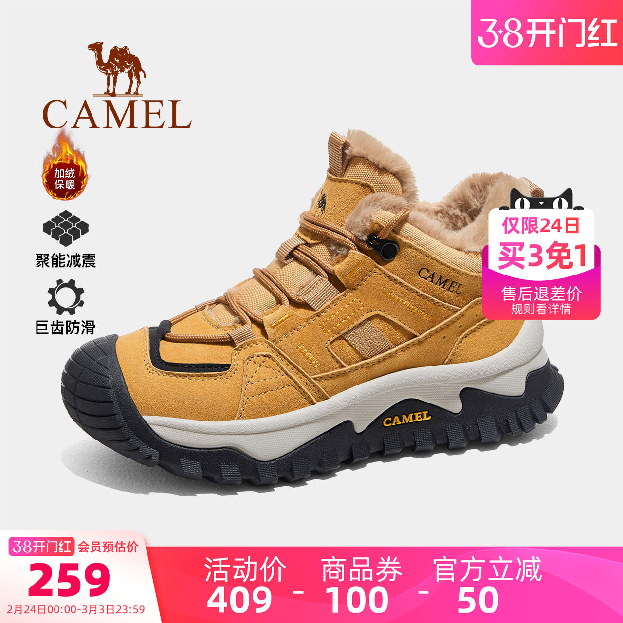 骆驼热雪3.0运动鞋男款2025冬季雪地靴防滑鞋子加绒保暖棉鞋女鞋