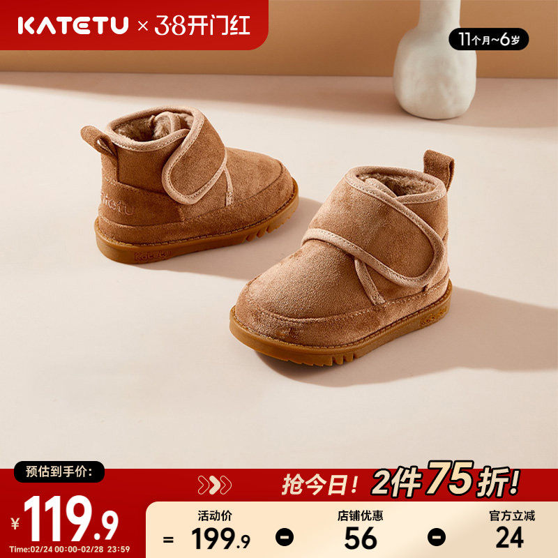 卡特兔儿童雪地靴女童二棉鞋保暖鞋男童靴子加绒宝宝冬季鞋子童鞋