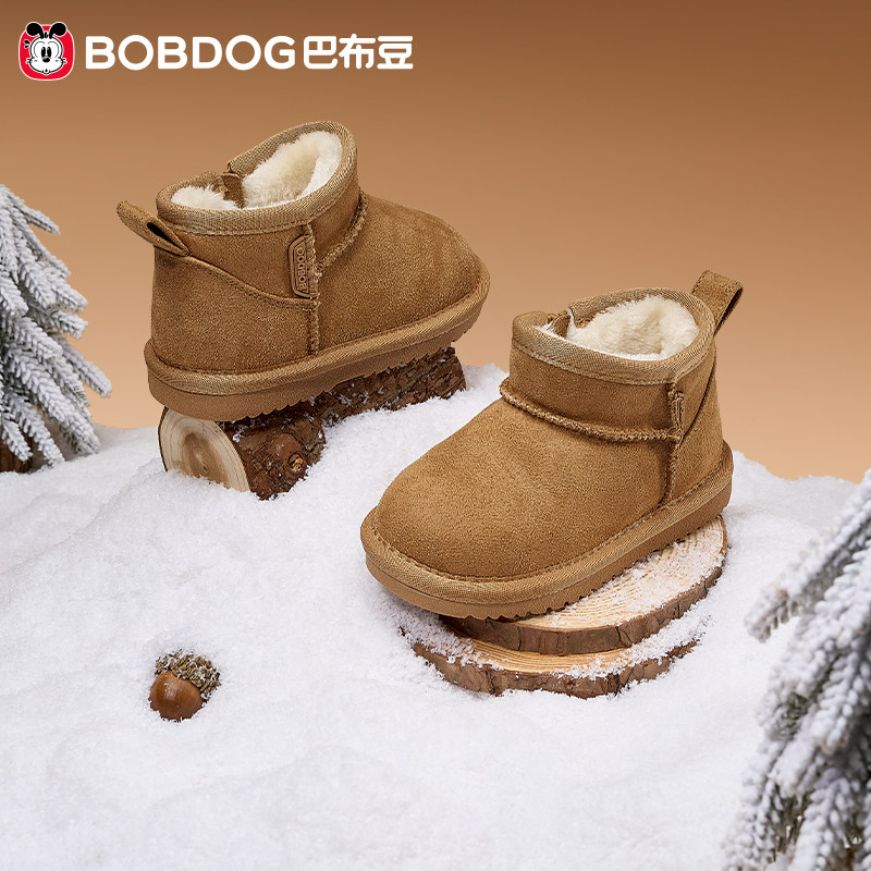 巴布豆童鞋儿童雪地靴冬季宝宝棉鞋加绒大棉男孩雪地棉女男童鞋子