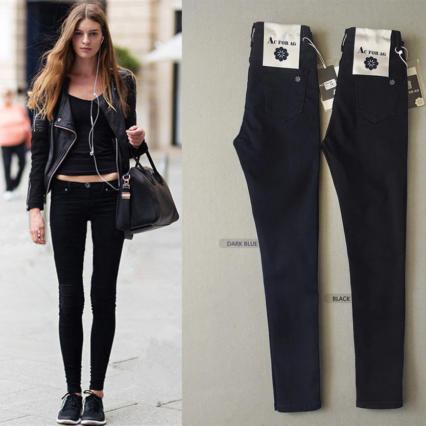 - 牛仔裤 小脚裤 女 显瘦黑色