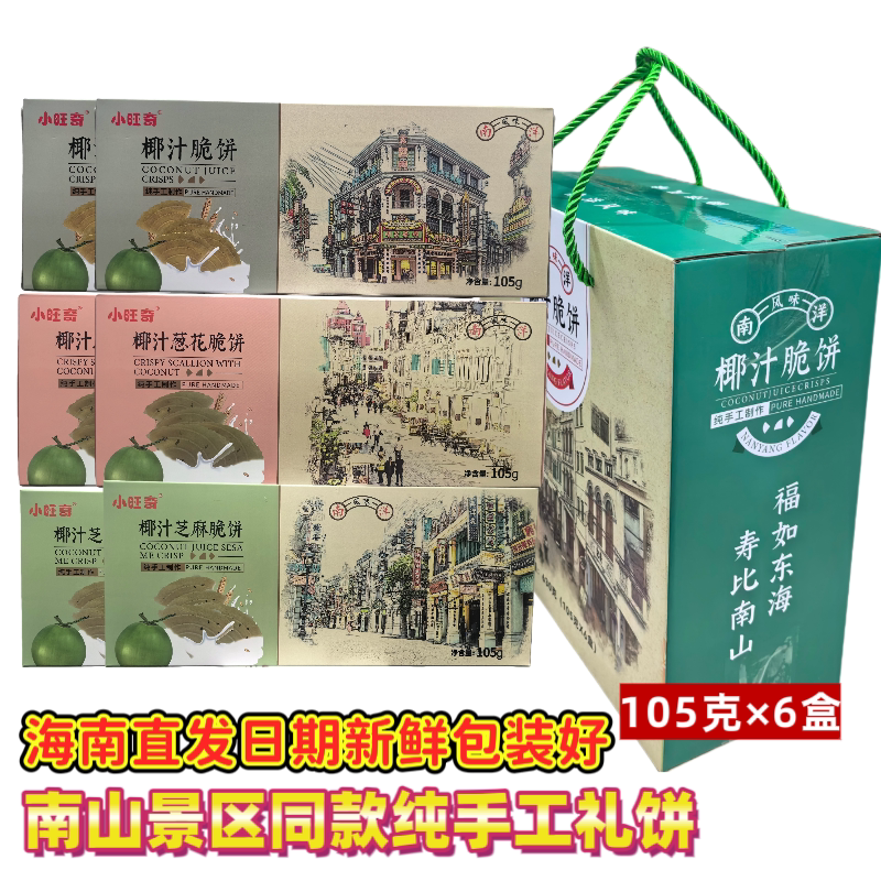 海南特产三亚南山寺椰汁脆饼 香葱脆饼 芝麻薄饼105克/包 礼盒装