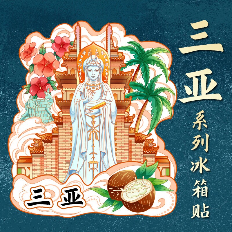 三亚城市景区磁吸冰箱贴南山寺不二文创礼品风景卡通磁贴磁铁创意