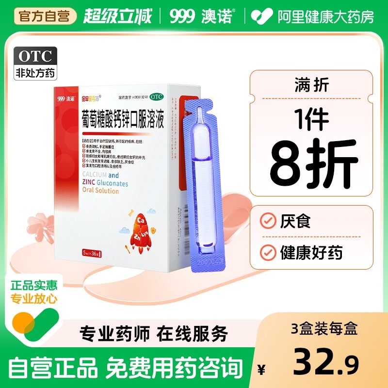 5盒澳诺葡萄糖酸钙锌口服溶液钙铁锌口服液儿童酸锌钙钙锌液体钙
