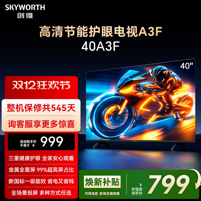 创维A3F 40英寸高清护眼卧室智能电视机 家用官方正品液晶平板
