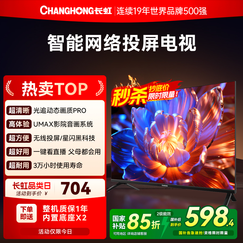 长虹32英寸高清家用彩电智能液晶电视老人卧室官方以旧换新补贴