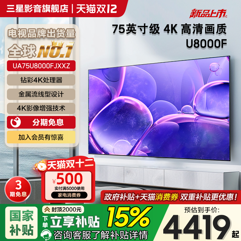 Samsung/三星75U8000F 75英寸4K高清智能液晶电视机新品 国补15%