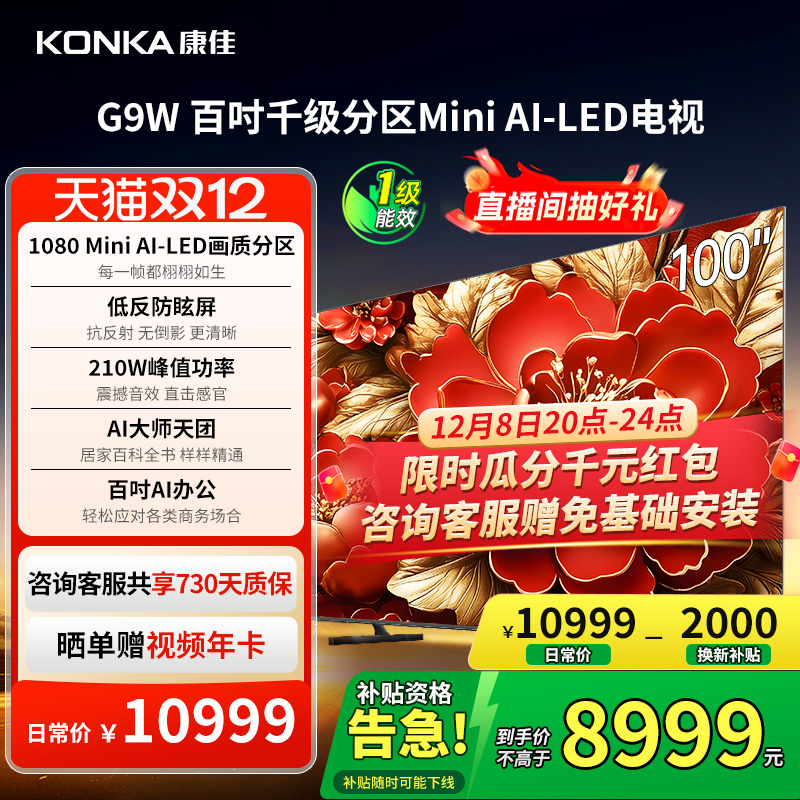 康佳G9W 100英寸Mini AI-LED巨幕 330Hz智能液晶电视机