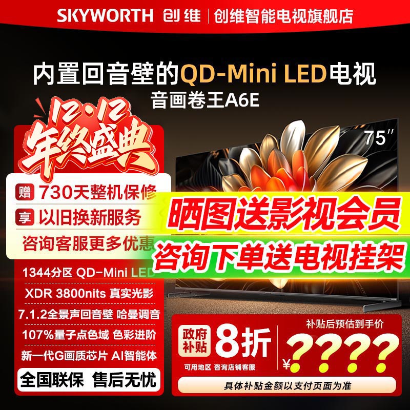 创维75A6E 75英寸Mini LED DeepSeek AI智能液晶电视机官方旗舰店