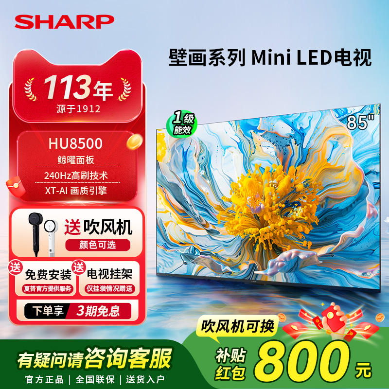 SHARP/夏普85英寸MiniLED家用240Hz高刷4K高清智能液晶电视HU8500