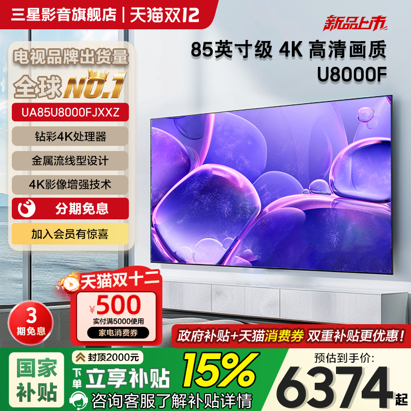 Samsung/三星85U8000F 85英寸4K高清智能液晶电视机新品 国补15%