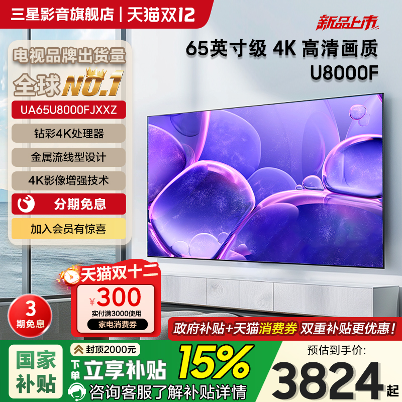 Samsung/三星65U8000F 65英寸4K高清智能液晶电视机新品 国补15%