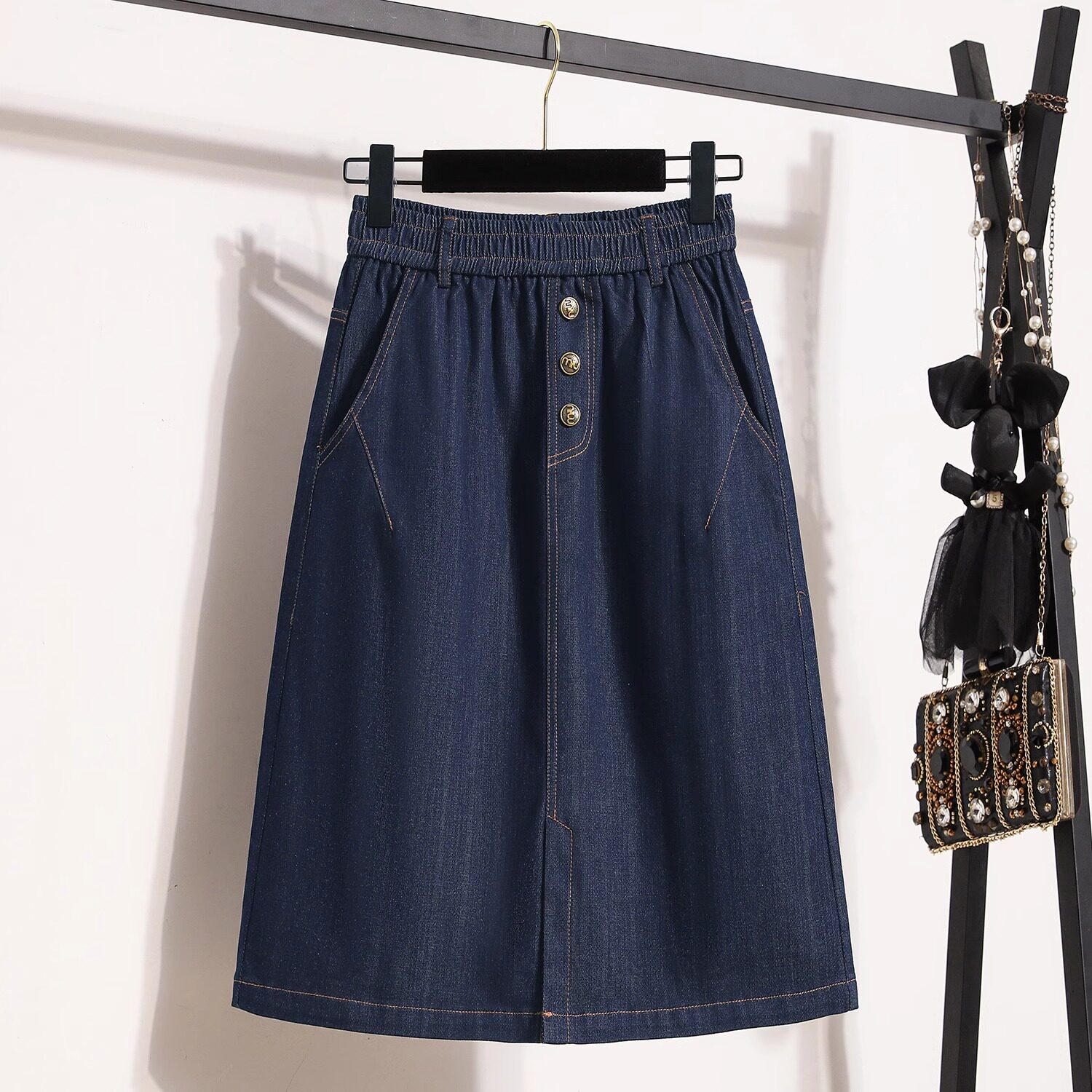 加大码夏季新款松紧腰a字牛仔半身裙女开叉中长款休闲牛仔裙子潮