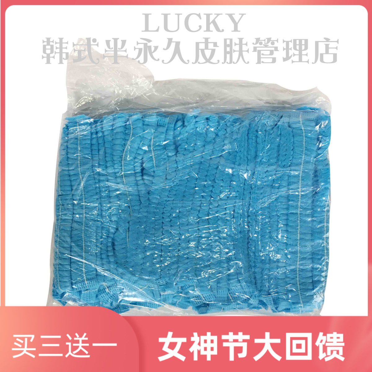 韩式半永久材料一次性卫生头套 蓝条形帽 无纺布美容院专用工作帽