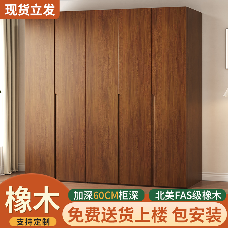橡木衣柜家用卧室2025新款爆款免安装衣橱原木风实木成人衣柜定制
