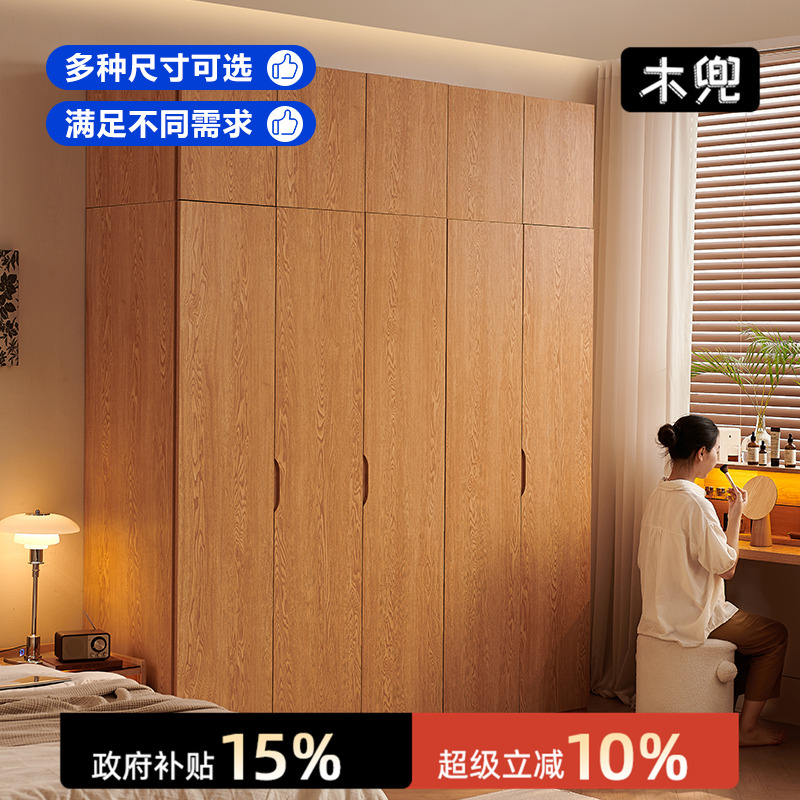 国补全实木橡木衣柜家用卧室2025新款可定制分段式免拉手收纳柜子