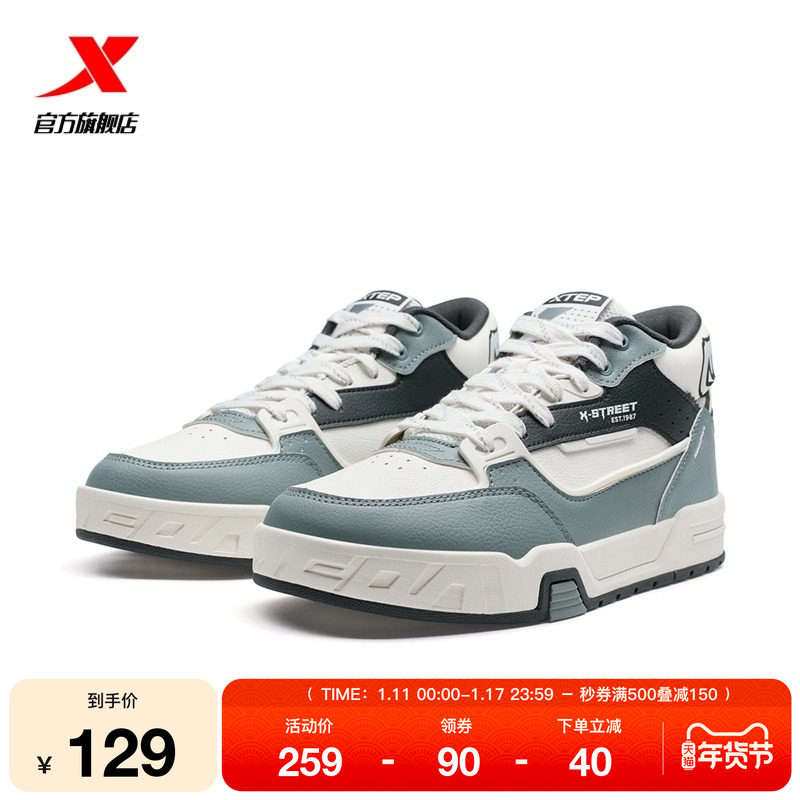 特步板鞋男鞋冬季新款百搭休闲鞋保暖高帮板鞋情侣运动鞋加绒棉鞋