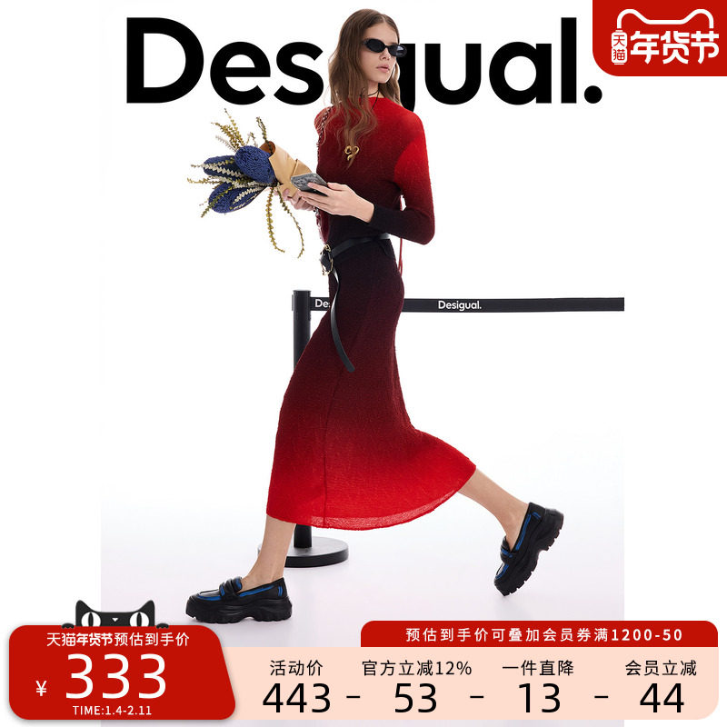 Desigual25秋冬新品撞色条纹拼接段染彩色豆豆纱圆领女式针织衫