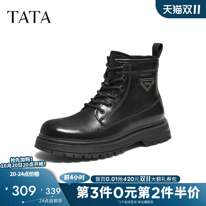 TATA他她靴子男2025冬季新款厚底短靴百搭男士痞帅工装靴VPS01DD5