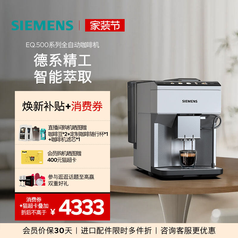 西门子全自动咖啡机家用办公室小型意式奶咖美式商用进口EQ500