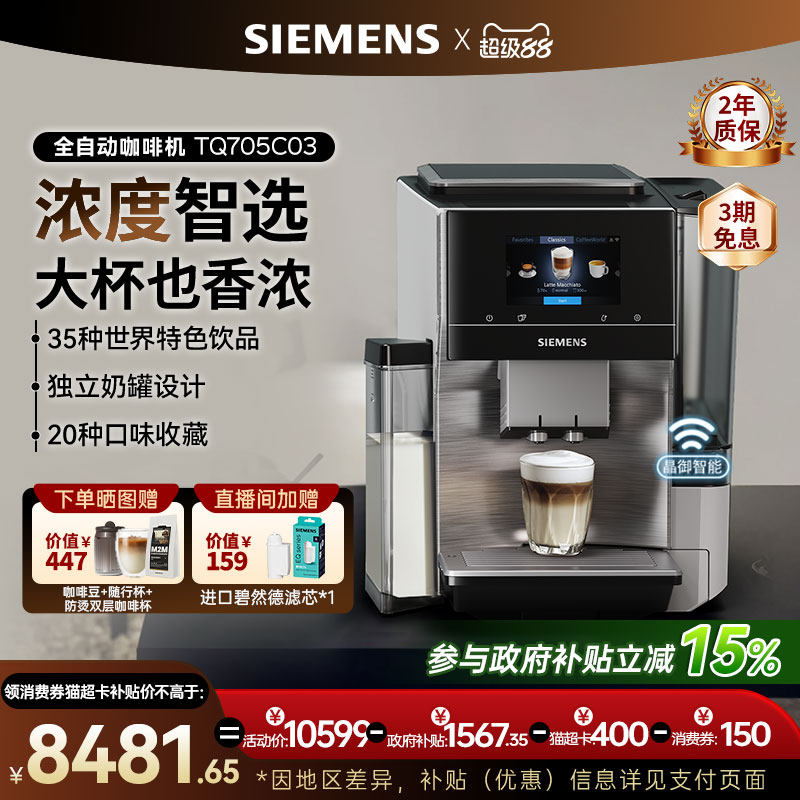 [精品]西门子全自动咖啡机家用智选世界咖啡整机进口TQ705C03