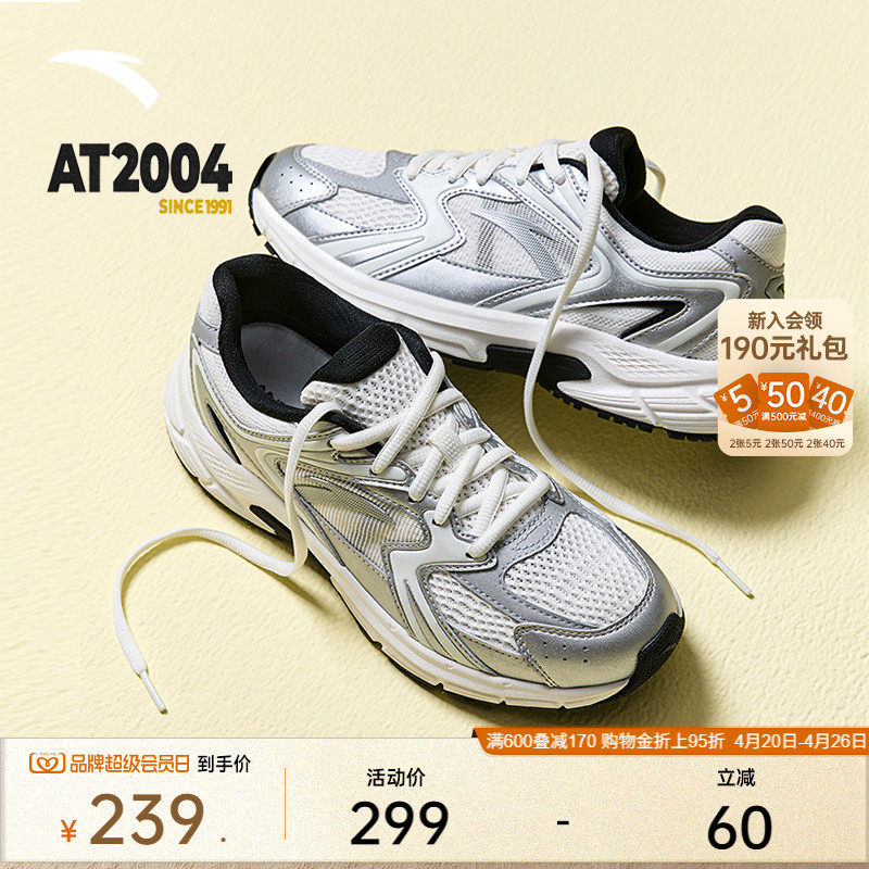 安踏AT2004丨复古银色跑步鞋男女同款情侣百搭潮流休闲时尚运动鞋