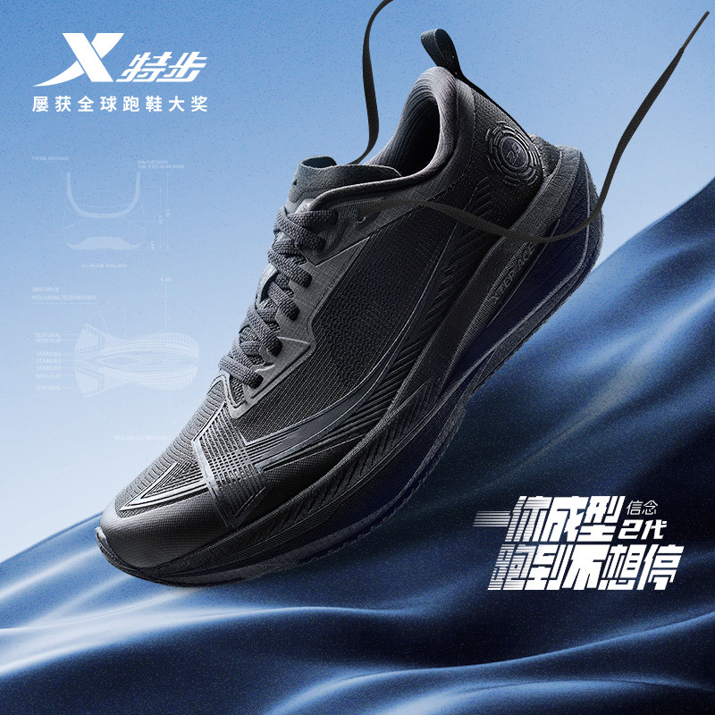 特步一体成型二代丨跑步鞋男鞋体测减震专业竞训情侣跑鞋女运动鞋