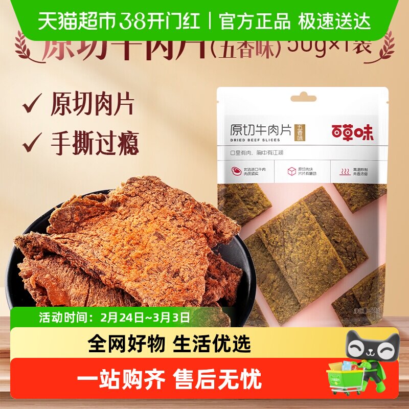 百草味原切牛肉干50g牛肉粒五香牛肉片香辣卤味办公室零食牛肉条